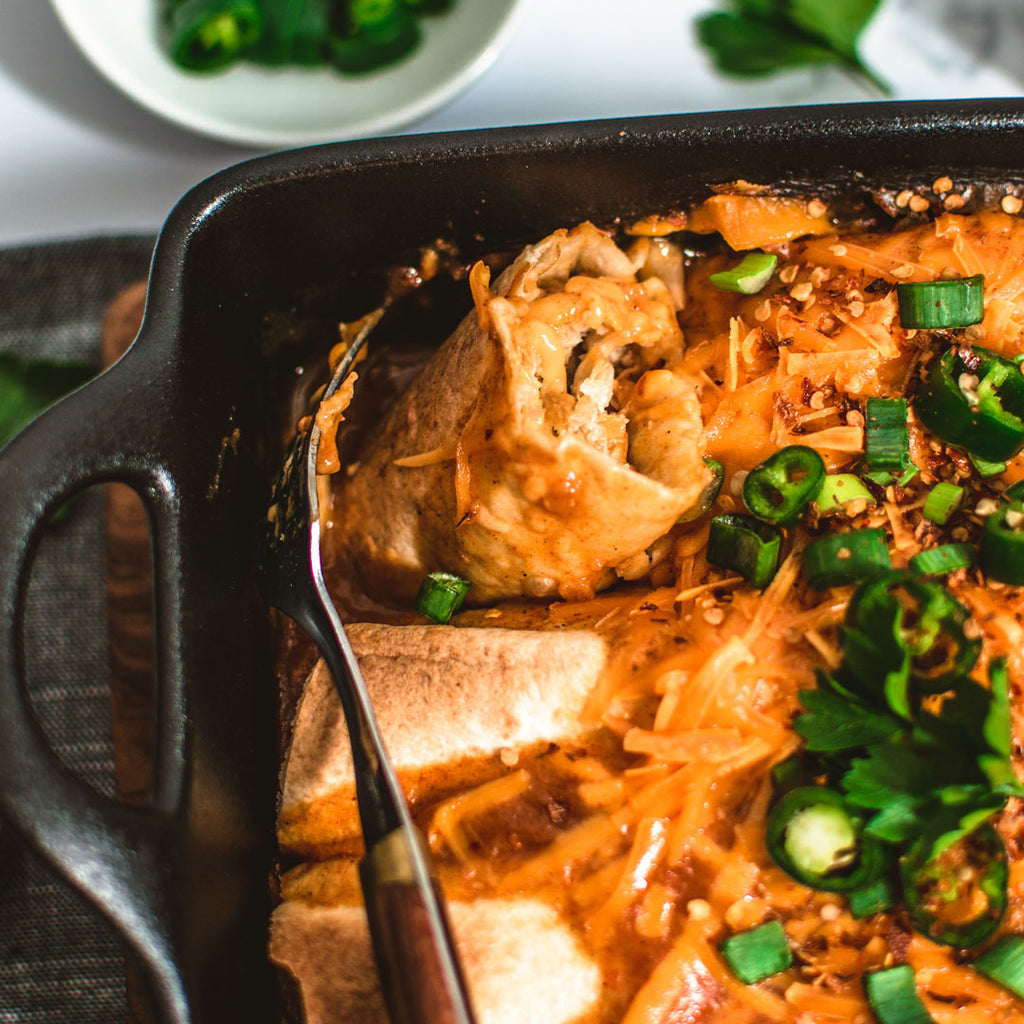 It's Enchilada making time! Using all the traditional ingredients and only substituting our Plant-Based Chicken, we'll have you second guessing if these enchilada's are the real deal.