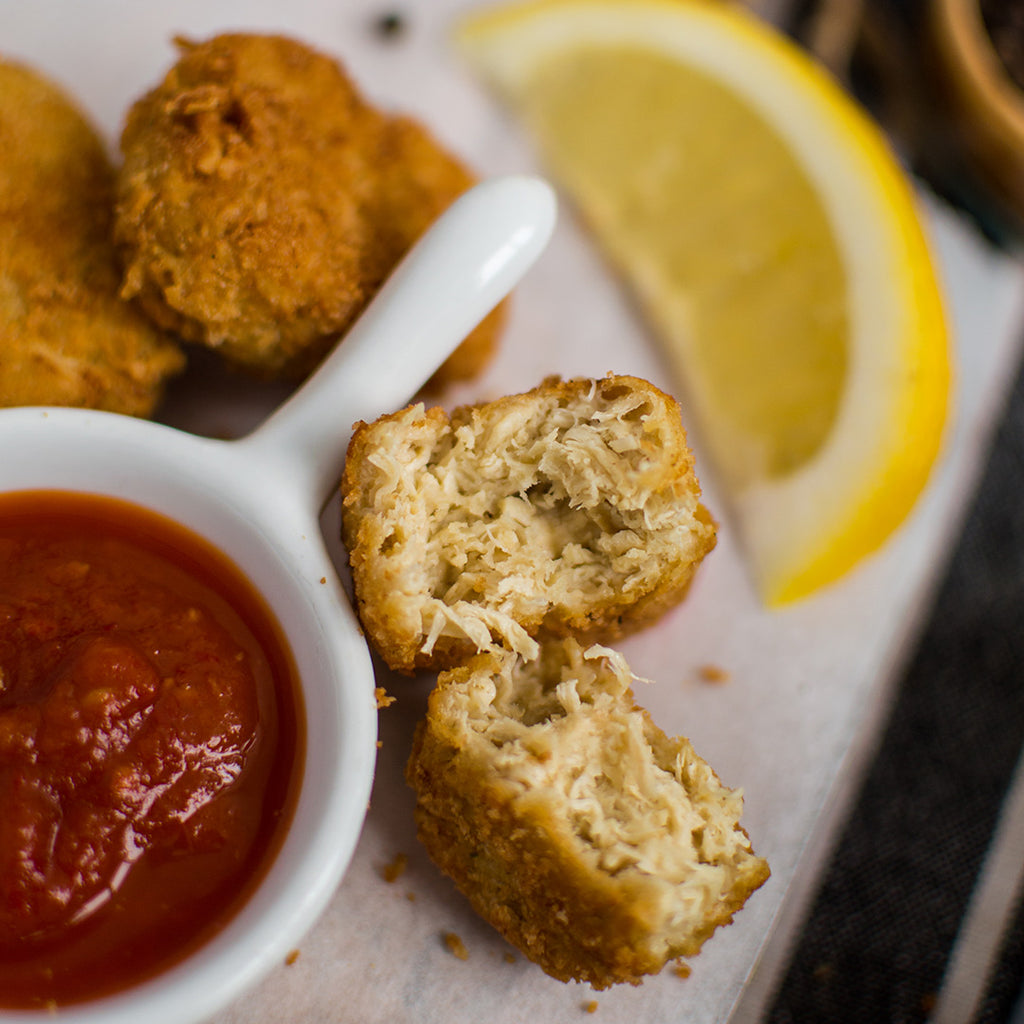 - Fill a saucepan 2-3cm deep with oil and bring to medium-high heat. Fry each nugget for about 2-3 mins or until golden all over. Remove from oil and drain on paper towel.