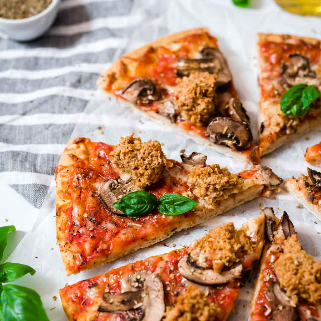 There’s no better smell than a fresh pizza in the oven… especially when it’s this vegan twist on an Italian classic - Funghi e Salsiccia! Meaning “mushroom and sausage”, this mushroom and vegan pork sausage pizza provides the perfect heartiness and punch of flavour to please anyone!