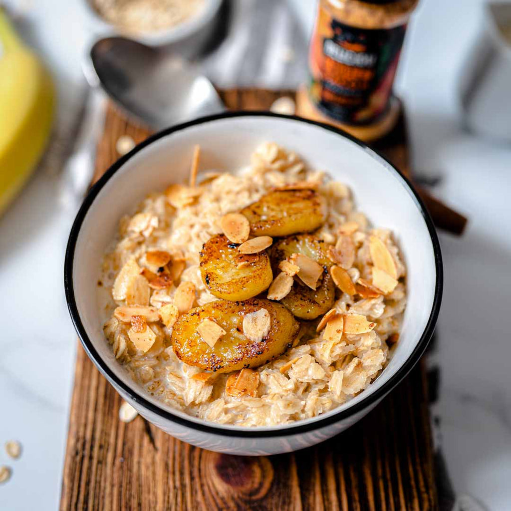 Did somebody say heartwarming AND delicious? This vegan Maple Bacon Porridge recipe will warm you up on a chilly morning and send you straight to heaven! It’s got decadent caramelised bananas, crunchy toasted almonds and that perfect balance of sweet and savoury...what more could you want?