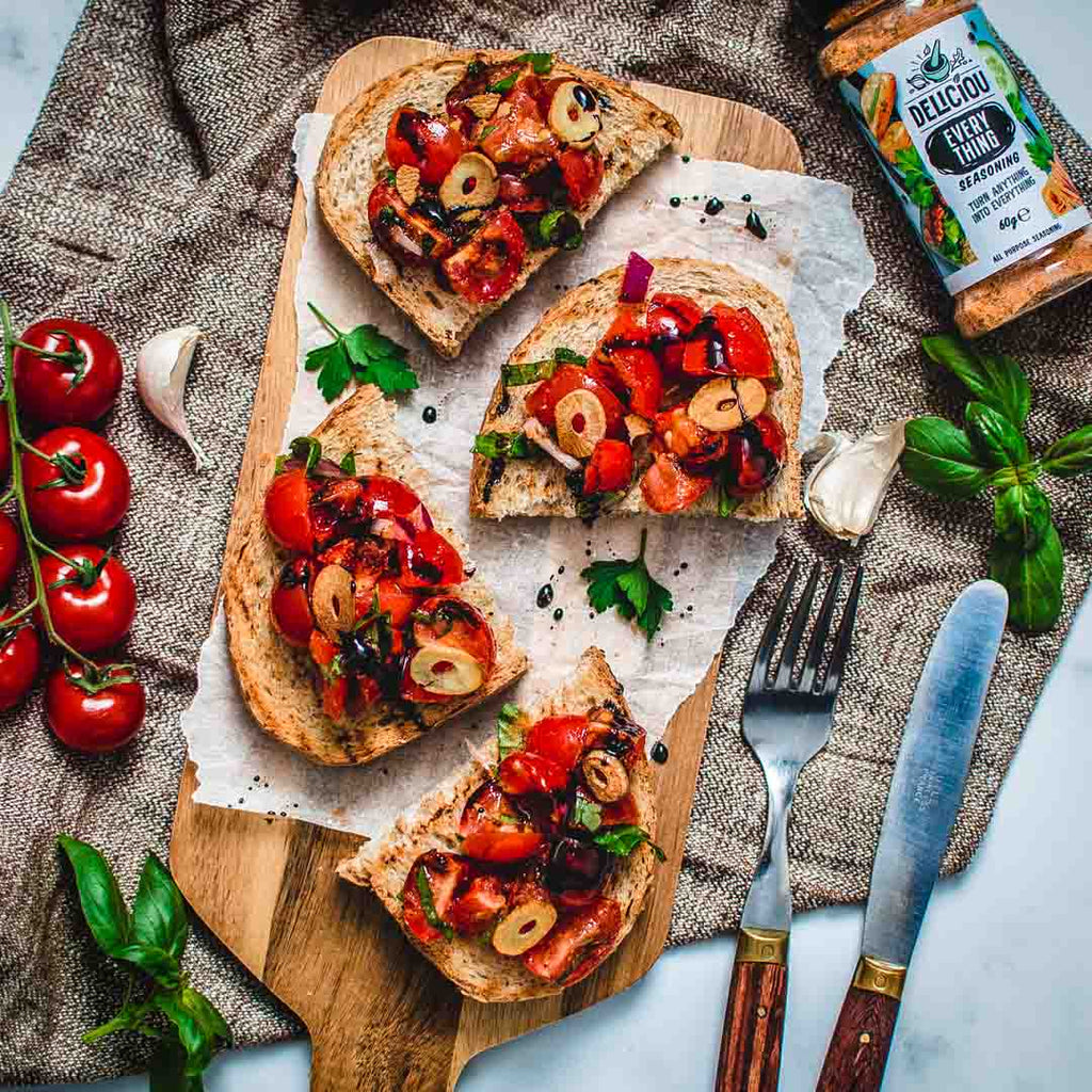This Bruschetta recipe stays true to its Italian roots but is packed with flavour! Make this as a light dinner, a starter, or a quick and delicious and snack!