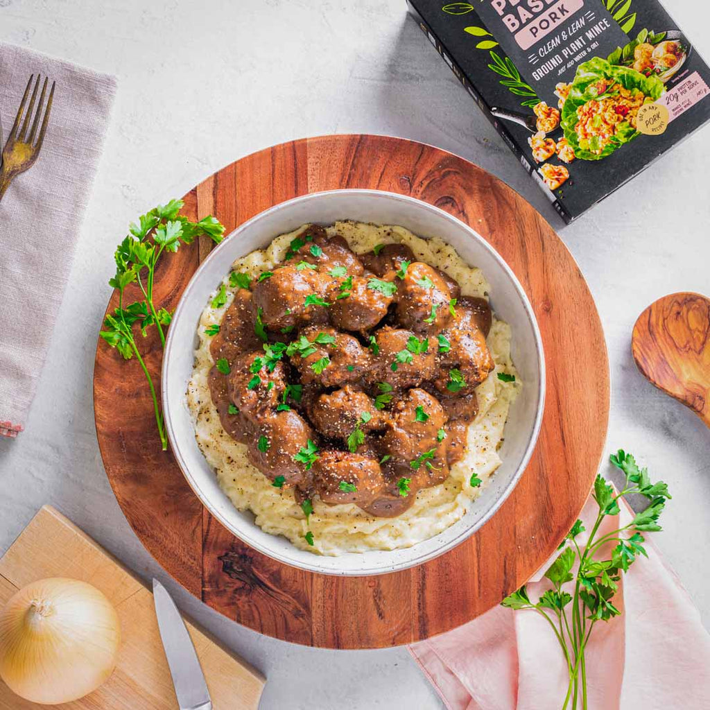 A vegan twist on a Swedish classic! This Swedish meatball recipe will warm you up from the inside out with its hearty mashed potatoes and delicious plant-based pork meatballs. Perfect for winter...or any time, really!